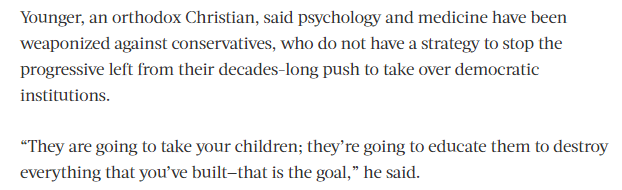 Jeff Younger lost custody and even unsupervised visitation with his two children because of the extreme measures he took to try and force his daughter, Luna, to present as a boy by forcing her into boys’ clothes and cutting her hair in a military style. He subsequently ran for state office, lost, and now appears to be milking the fascist arm of the far right for speaking engagements, most likely with an eye on future runs.
