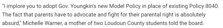 For the trans-affirming side, they quote a former teacher, a Loudoun resident, and one parent.