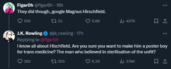 I think this is personal for Joanne, or JK, or Richard Galbraith. Whatever the fuck her name is. She can’t abide the truth, that the Nazis targeted transgender people and their allies, because she’s doing the very same thing. She is a catalyst of hatred and a proponent of bigotry against transgender people, and she has been for years, and that puts her squarely in the same camp as Adolf Hitler and the fucking Nazi Party.