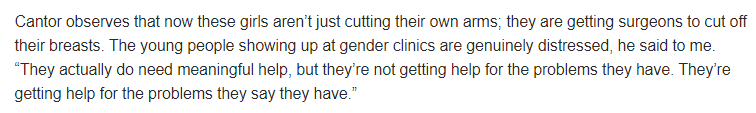 This article strikes a reasonable tone, but it leaves out information necessary to understand the issues at play. Davis’ primary focus is the lack of evidence behind treatments for gender dysphoria in youth in light of the recently published update to WPATH guidelines for transgender medical care. However, she fails to compare evidence for treatments for gender dysphoria with evidence for youth medicine in other areas.