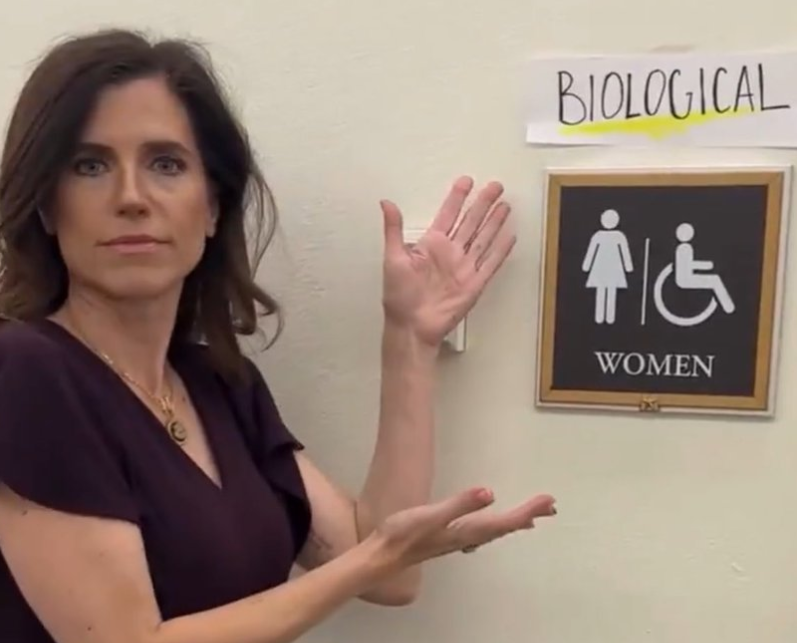 South Carolina Representative Nancy Mace (R, fucking obviously) introduced a resolution to a rules package House members will vote on next month that, should it be adopted, would ban transgender people from using the correct bathrooms, locker rooms and changing rooms based on their “biological sex” (meaningless term, scrub it from the annals of your noggin noodle post-haste, thanks) in the US Capitol and House office buildings. A more targeted piece of legislation there has never been.